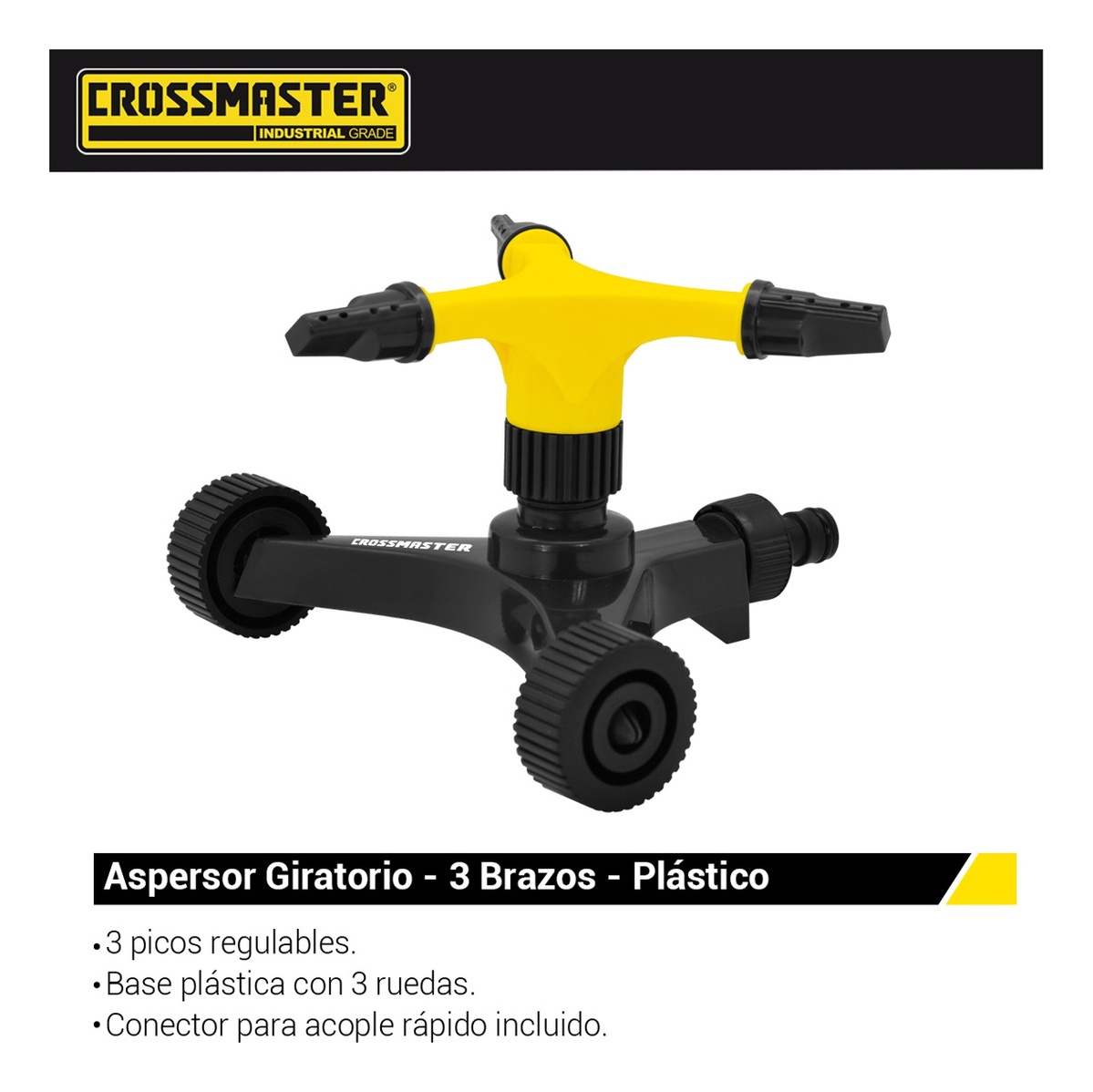 El Aspersor Giratorio 3 Brazos de Crossmaster, modelo 9937930, es la solución ideal para mantener tu jardín o área verde siempre hidratada. Con un diseño eficiente y funcional, este aspersor cuenta con tres boquillas que permiten una distribución uniforme del agua, asegurando que cada rincón reciba la atención necesaria.