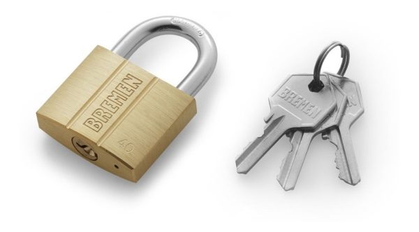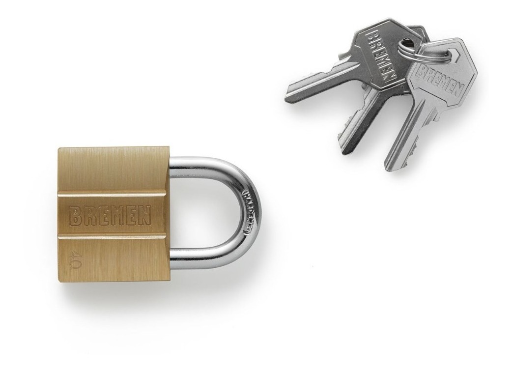 • Aro cementado para mayor resistencia. Doble traba para máxima seguridad. Logo BREMEN grabado en el cucerpo. 3 llaves pentagonales de bronce recubiertas en níquel que admiten copia. Tambor de bronce, resorte de acero inoxidable.