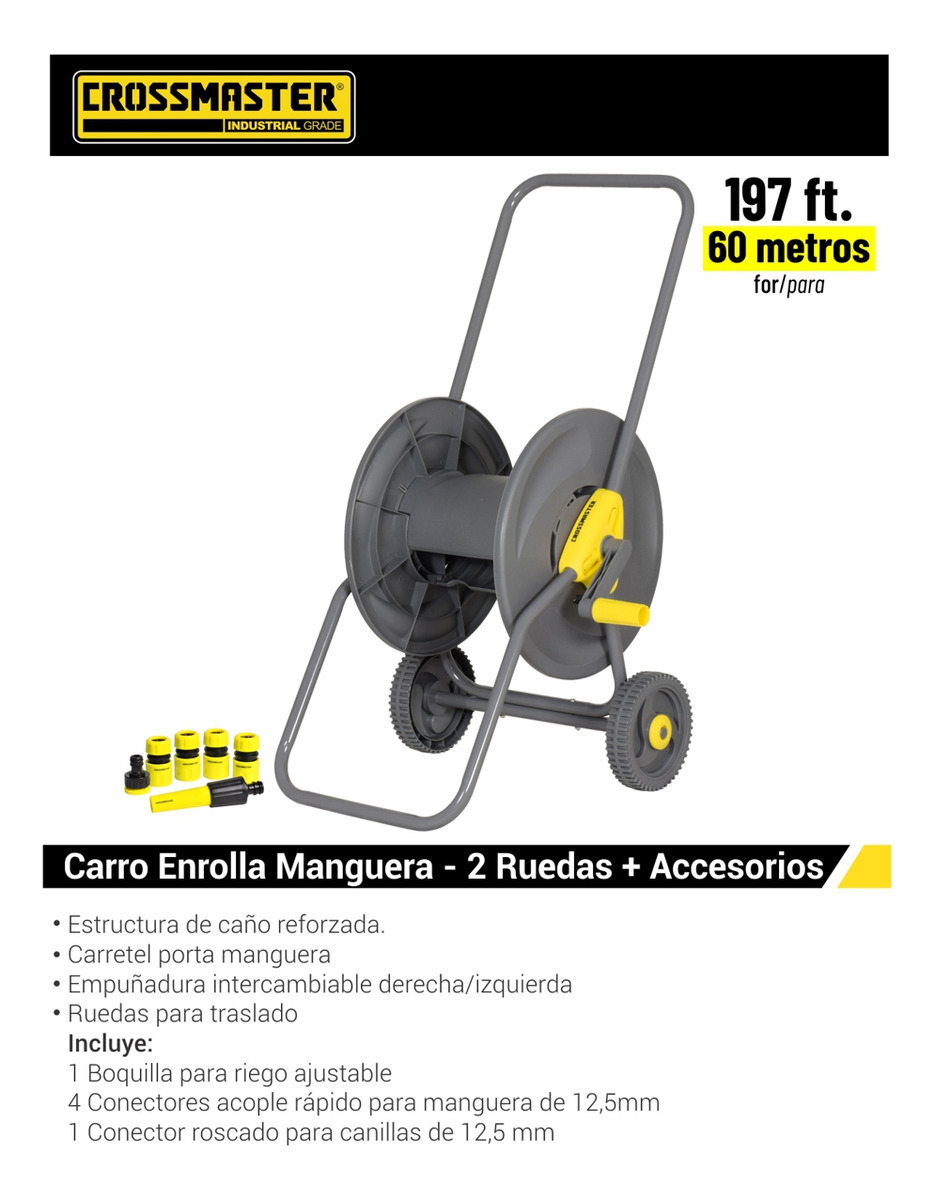 Optimiza tu tiempo y esfuerzo con el Carro Enrolla Manguera Crossmaster 9937990, una herramienta que combina calidad y practicidad para el cuidado de tus espacios exteriores. Ideal para quienes buscan un producto duradero y eficiente, este carro es una inversión que simplificará tus tareas de jardinería y mantenimiento.