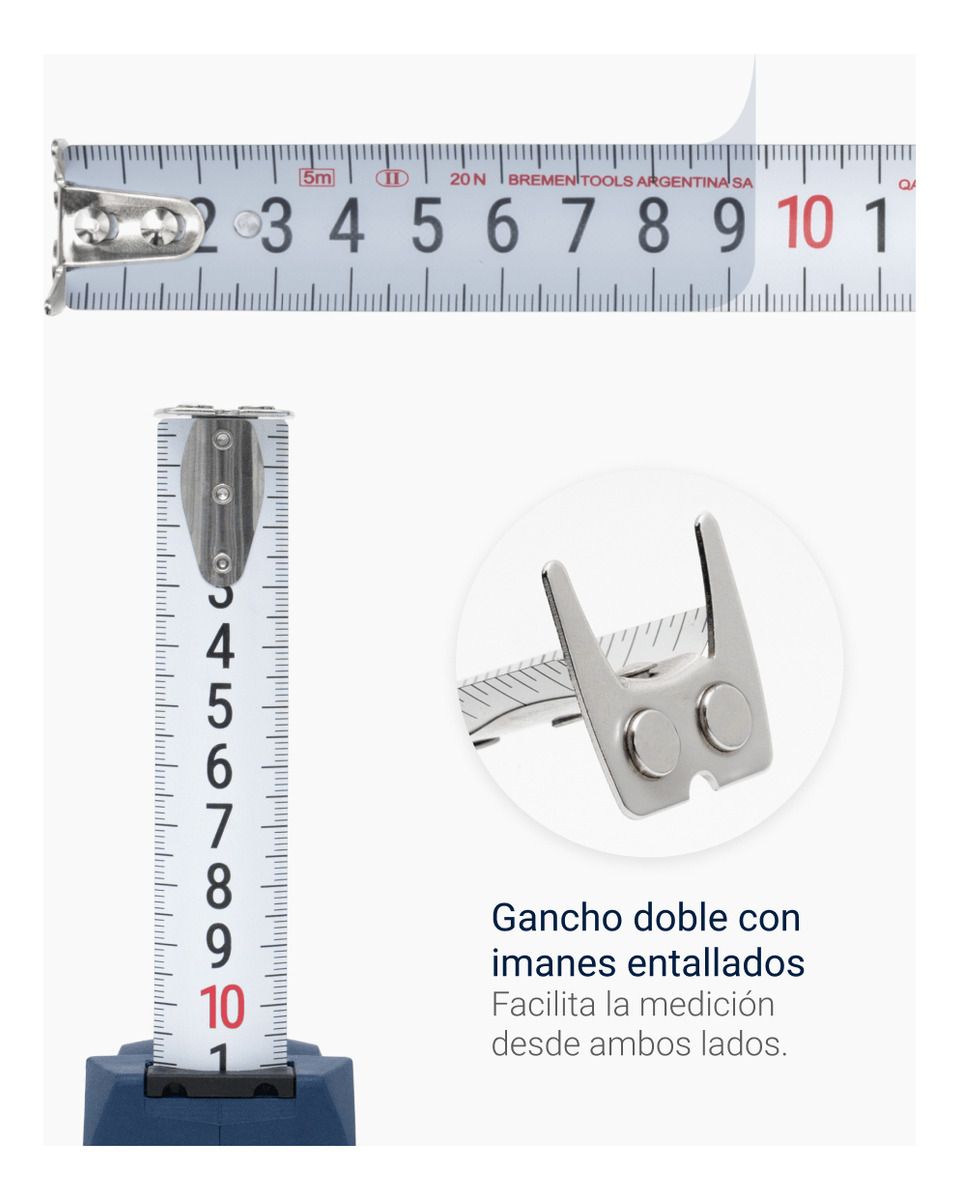 Fabricada con una superficie de plástico y una cinta de acero, esta cinta métrica es resistente y duradera. Su mecanismo retráctil asegura que la cinta se recoja de manera eficiente, evitando enredos y daños. Además, cuenta con doble lectura, lo que permite visualizar las medidas desde diferentes ángulos, aumentando la comodidad y la precisión en el trabajo.