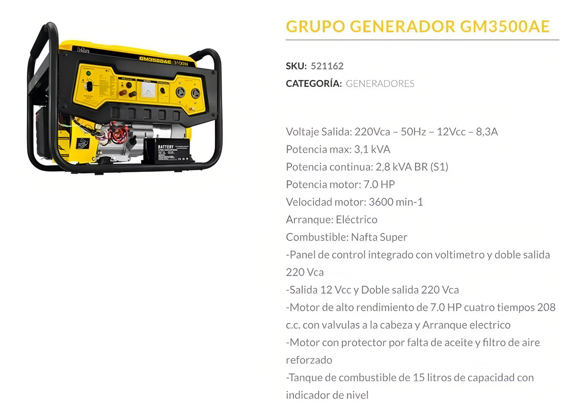 Con una capacidad de tanque de 15 litros, el GM3500 ofrece una autonomía de hasta 8 horas, permitiéndote realizar tus actividades sin interrupciones. Su consumo de 1 litro por hora lo convierte en una opción económica y práctica. Aunque no es silencioso, su rendimiento y durabilidad compensan este aspecto.