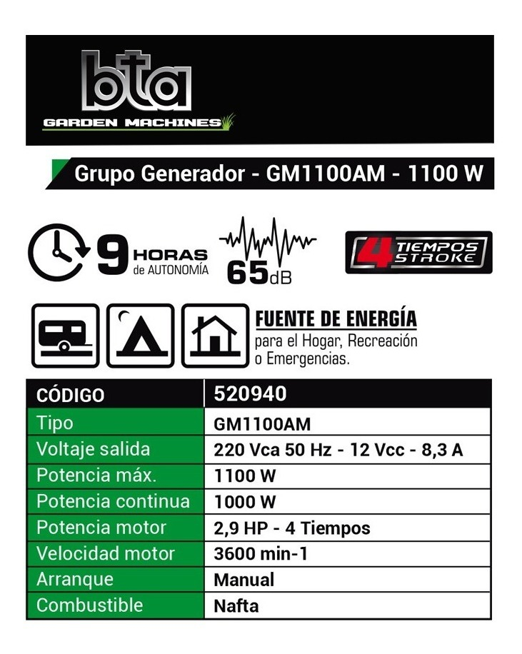 El Grupo Generador Bta 520940 es una herramienta versátil que se adapta a diversas necesidades energéticas. Ya sea para acampar, realizar trabajos al aire libre o como respaldo en el hogar, su rendimiento y durabilidad lo convierten en una opción confiable. Asegúrate de tener siempre energía a tu disposición con este generador de alta calidad.