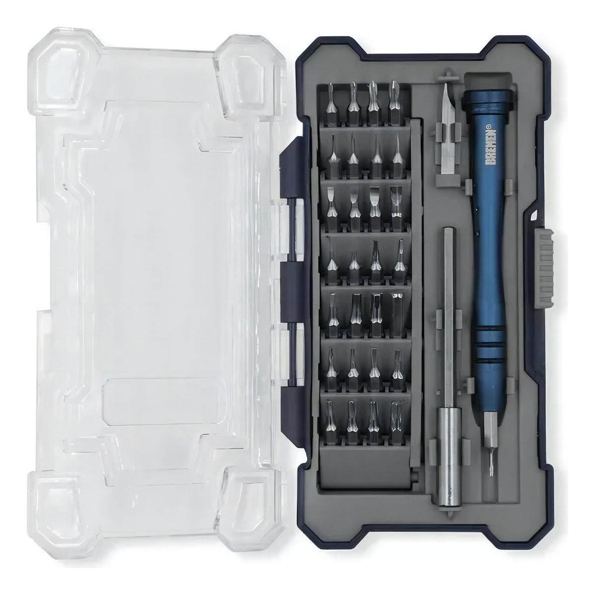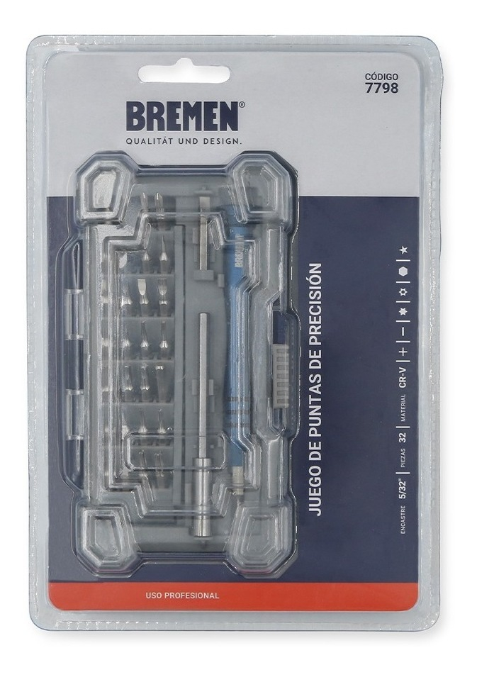 Descubre el Juego de Destornillador y Puntas de Precisión Bremen 7798, una herramienta esencial para cualquier entusiasta del bricolaje o profesional del mantenimiento. Con 32 puntas intercambiables, incluyendo formatos planos, hexagonales, Torx, Phillips y en estrella, este conjunto cubre una amplia gama de necesidades y proyectos.