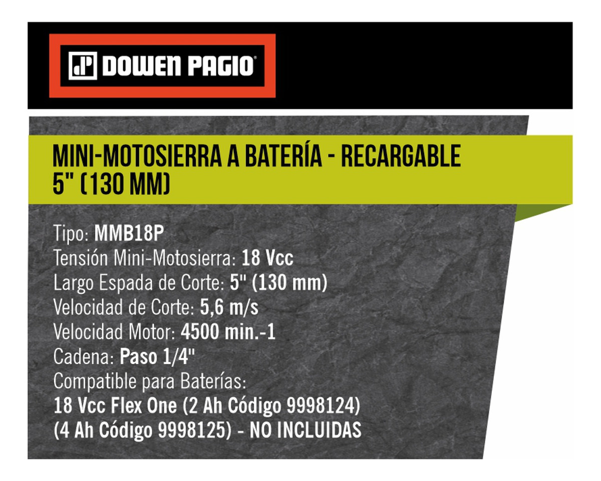 Mini Motosierra De Mano Inalambrica Sin Bat Dowen Pagio 18vDisponibilidad: pocas unidades