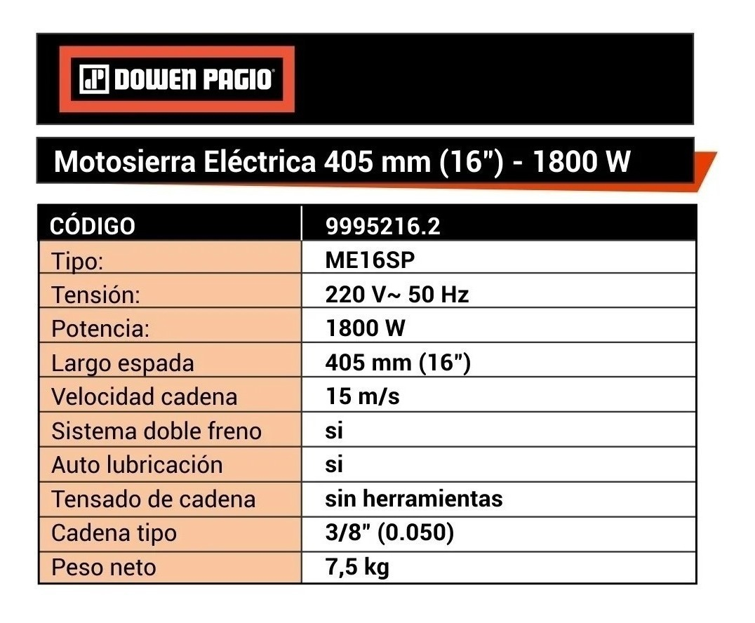 La Motosierra Eléctrica 1800 W 405 Mm Dowen Pagio 9995216.2 es la herramienta ideal para quienes buscan eficiencia y potencia en sus tareas de jardinería y mantenimiento. Con una potencia de 1.8 kW, esta motosierra permite realizar cortes precisos y rápidos, facilitando el trabajo en madera de diferentes grosores.
