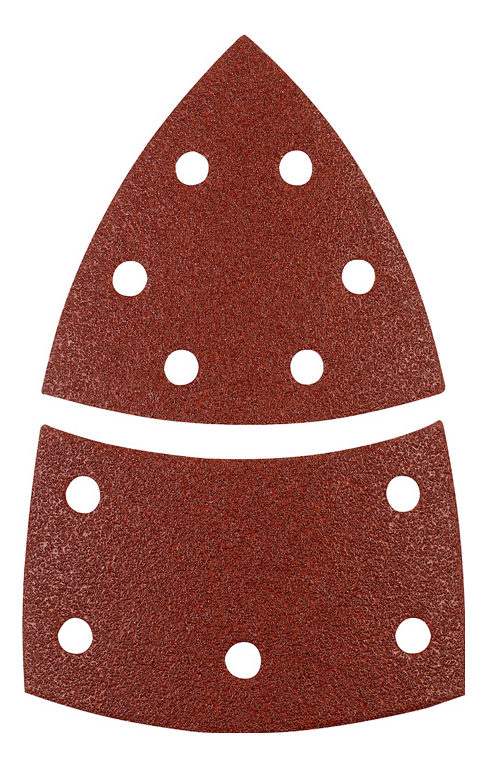 Triángulos abrasivos, MADERA Y METAL, corindón puro, 100 x 62, 93 mm, recubierto de óxido de aluminio, ligado con resina sintética maciza, material de soporte reforzado, con dorso de terciopelo, perforado, para lijadoras delta/triángulo, para lijado de metal y madera, pintura, laca, masilla, piedra y plástico.