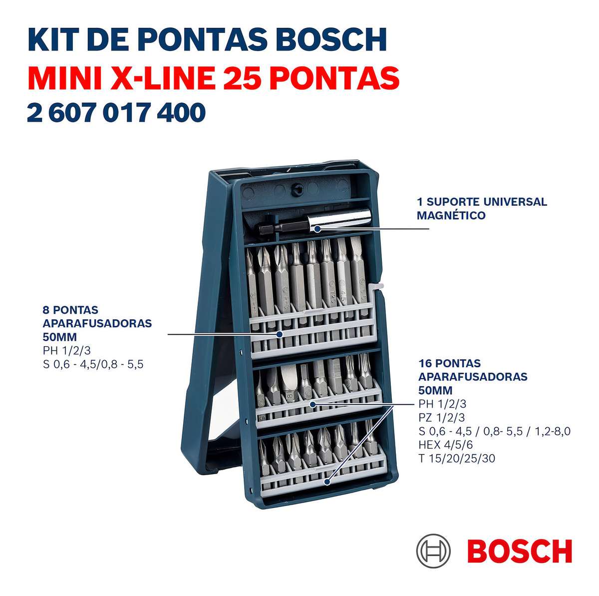 El Set Mini-x-line Bosch 25 Accesorios Para Atornillar es la solución ideal para quienes buscan versatilidad y calidad en sus proyectos de atornillado. Con un diseño compacto y funcional, este conjunto incluye herramientas de acero de alta resistencia, garantizando durabilidad y eficiencia en cada uso. Su tipo de llave de golpe permite un apriete preciso, facilitando tareas tanto en el hogar como en entornos profesionales.