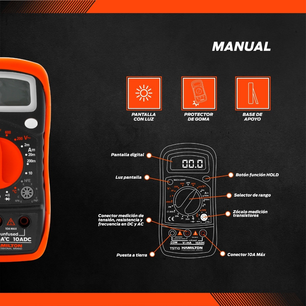 Tester Multimetro Digital Profesional Luz Hamilton Tst10 Tr